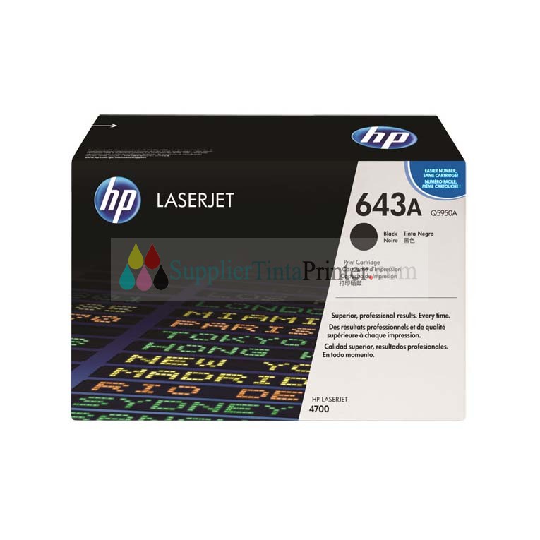 HP Black Toner 643A [Q5950A]  Menghasilkan halaman standar dan Dokumen berkualitas Profesional.Kemungkinan anda mencetak teks tajam dan grafis bagus dengan hasil yang maksimal.